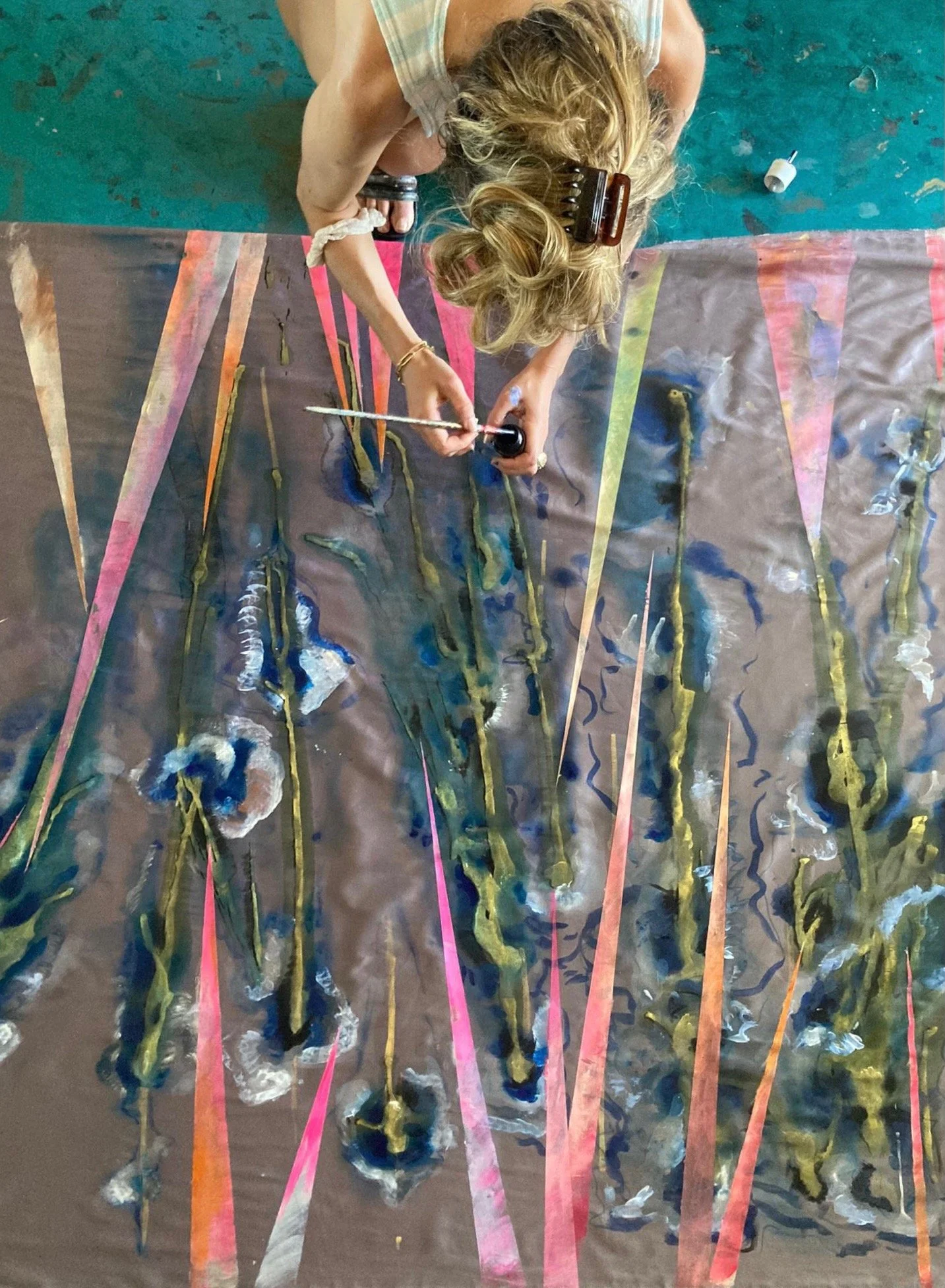 Rideau N.1 Medusa, 2021. Sateen Coton, acrylic paint.